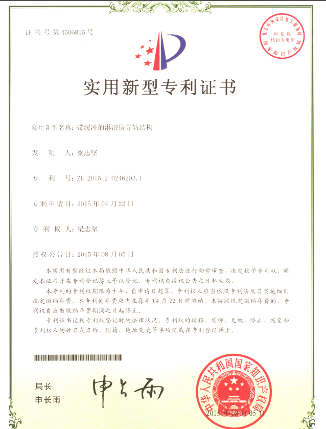 | Имя сертификата: | Shower room guide rail structure with buffer |