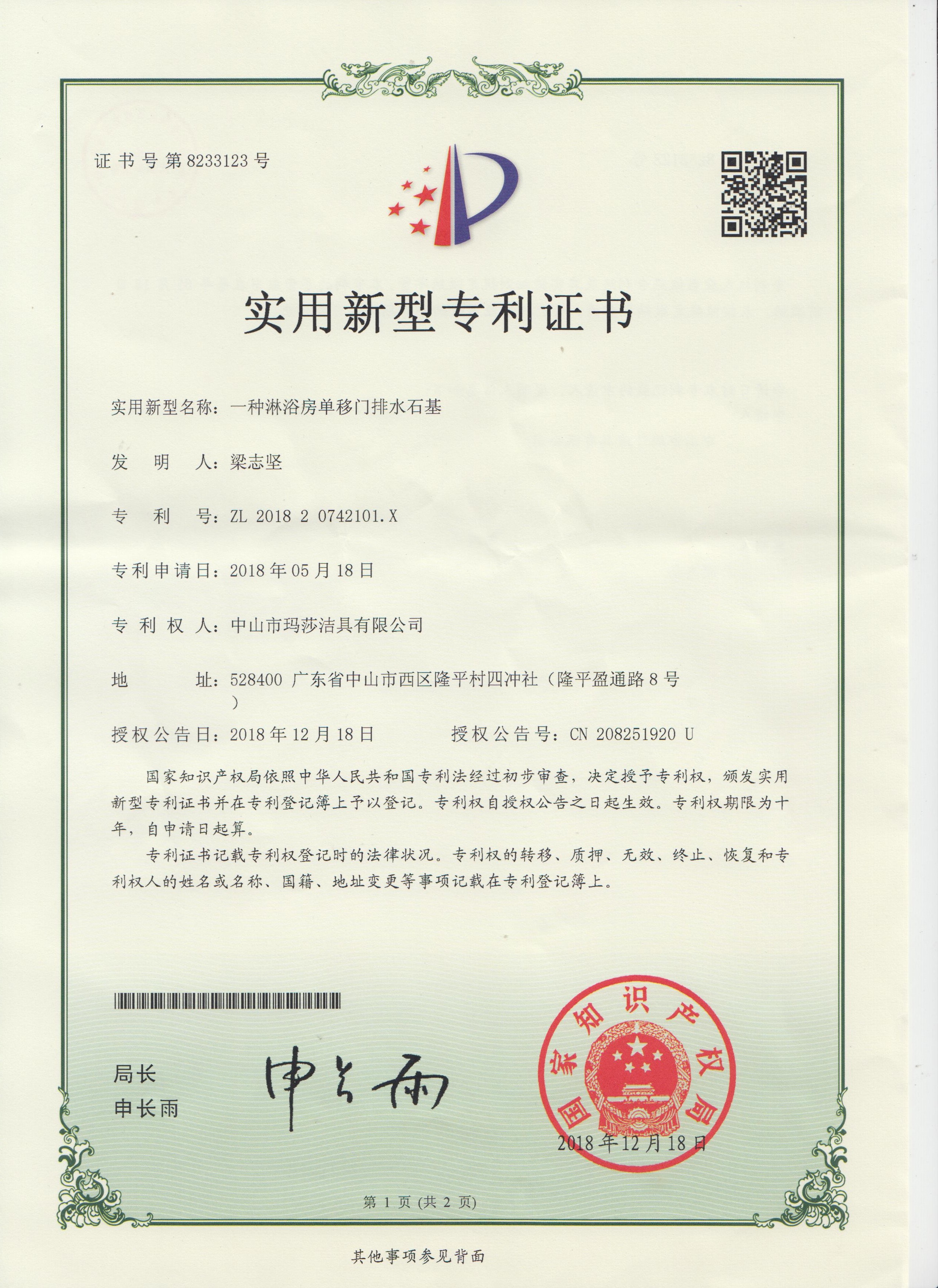 | Номер сертификата: | ZL201820742101.X |
